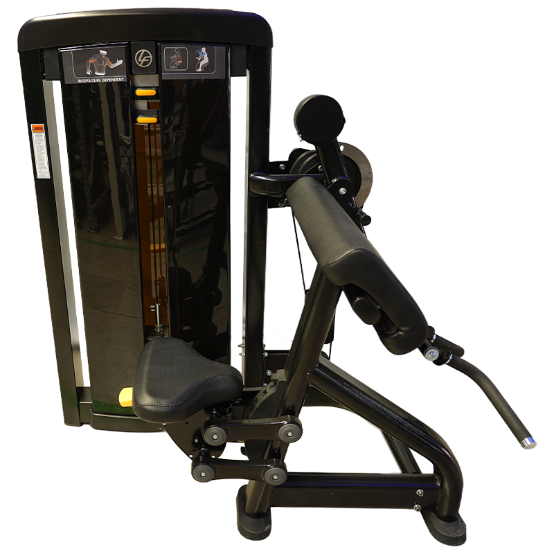 Biceps Curl / Extension de Tríceps Dual LFI posee reposabrazos inclinados y pivotes de precisión que optimizan la biomecánica para aislar el bíceps, lo que limita el movimiento del hombro y reduce la tensión en la muñeca. Su diseño ergonómico ofrece estabilidad y alineación superior, es ideal para el entrenamiento de fuerza en gimnasios de alto tráfico.