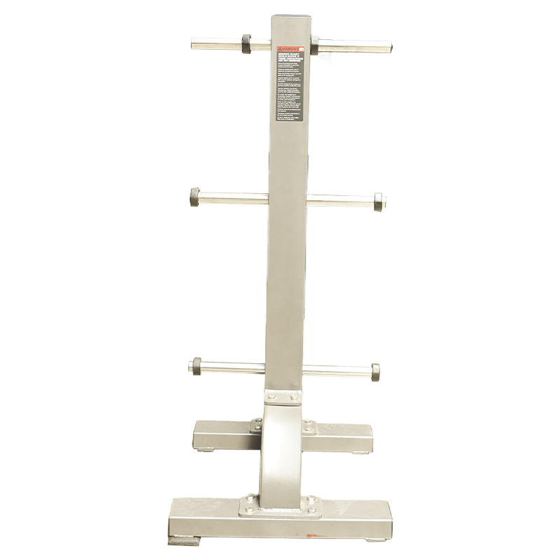 El Rack Discos Vertical PR organiza discos con seis soportes de pequeño diámetro, optimizando el espacio. Su diseño robusto mejora la estabilidad y seguridad, ideal para entrenamientos intensivos en gimnasios de alto tráfico. El sistema permite un acceso fácil a los discos, alineando la carga para un movimiento de carga biomecánicamente eficiente.