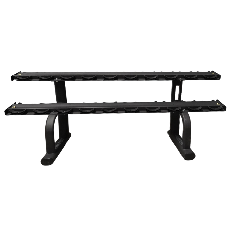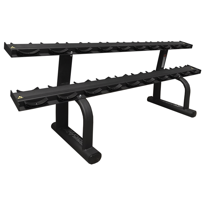 El Rack para Mancuernas LF ofrece almacenamiento organizado para 10 pares de mancuernas. Su construcción robusta y sus dos niveles con monturas individuales aseguran el equipo y facilitan un acceso seguro. Es una solución de alta durabilidad, diseñada para la eficiencia en gimnasios de alto tráfico.