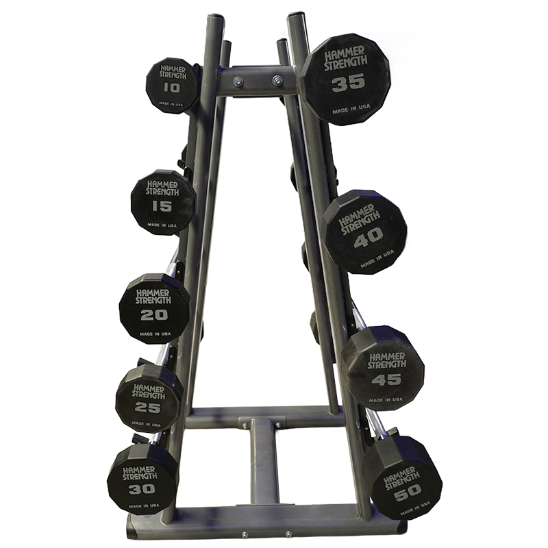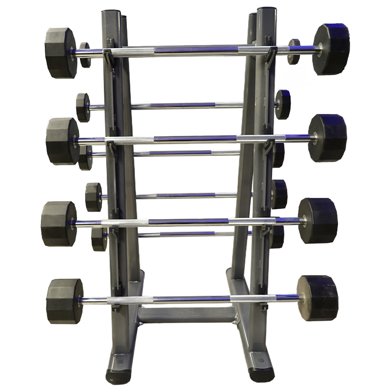 El Set de Barras Rectas de 10 kg a 50 kg HS cuenta con un eje de cromo duro para una durabilidad superior. Su exclusivo cabezal en forma de X evita el rodamiento, lo que incrementa la seguridad. Es una inversión premium para el entrenamiento de fuerza en gimnasios de alto tráfico.
